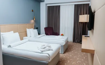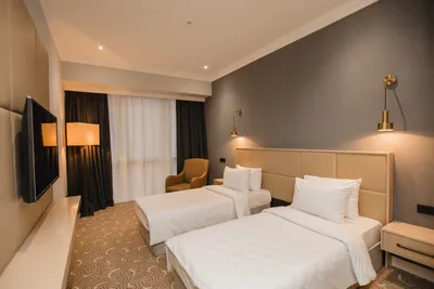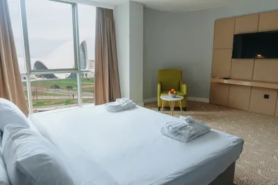 Если бронировать номер, то только с видом на центр г. Алиева (парк). В отеле чисто, вода питьевая каждый день в номер, на ресепшен всегда помогут, есть русскоговорящие. Завтрак удивил (разное меню каждый день), вкусно, сытно.