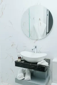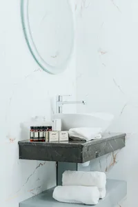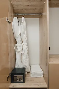 В ванной комнате нет крючков для полотенец, нет полотенцесушителя, нет ершика для унитаза. Заселились 2 человека — халат был один, тапочек нет, из мыльных и гигиенических принадлежностей только 1 гель и 1 шампунь. Если проживать несколько дней, то нужно просить, чтобы убирали номер и давали воду.